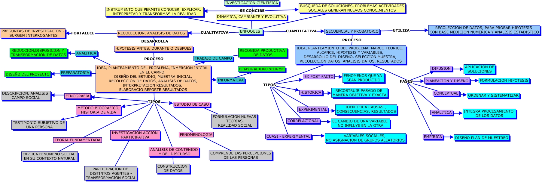 Este Cmap, tiene información relacionada con: FUNDAMENTOS, IDEA, PLANTEAMIENTO DEL PROBLEMA, INMERSION INICIAL EN EL CAMPO, DISEÑO DEL ESTUDIO, MUESTRA INICIAL, RECOLECCION DE DATOS, ANALISIS DE DATOS, INTERPRETACION RESULTADOS, ELABORACIO REPORTE RESULTADOS ???? TRABAJO DE CAMPO, IDEA, PLANTEAMIENTO DEL PROBLEMA, INMERSION INICIAL EN EL CAMPO, DISEÑO DEL ESTUDIO, MUESTRA INICIAL, RECOLECCION DE DATOS, ANALISIS DE DATOS, INTERPRETACION RESULTADOS, ELABORACIO REPORTE RESULTADOS ???? INFORMATIVA, ANALITICA ???? REDUCCION,DISPOSICION Y TRANSFORMACION DE DATOS, IDEA, PLANTEAMIENTO DEL PROBLEMA, INMERSION INICIAL EN EL CAMPO, DISEÑO DEL ESTUDIO, MUESTRA INICIAL, RECOLECCION DE DATOS, ANALISIS DE DATOS, INTERPRETACION RESULTADOS, ELABORACIO REPORTE RESULTADOS ???? ANALITICA, IDEA, PLANTEAMIENTO DEL PROBLEMA, INMERSION INICIAL EN EL CAMPO, DISEÑO DEL ESTUDIO, MUESTRA INICIAL, RECOLECCION DE DATOS, ANALISIS DE DATOS, INTERPRETACION RESULTADOS, ELABORACIO REPORTE RESULTADOS TIPOS FENOMENOLOGIA, ANALISIS DE CONTENIDO Y DEL DISCURSO ???? CONSTRUCCION DE DATOS, PREPARATORIA ???? DISEÑO DEL PROYECTO, METODO BIOGRAFICO, HISTORIA DE VIDA ???? TESTIMONIO SUBJETIVO DE UNA PERSONA, IDEA, PLANTEAMIENTO DEL PROBLEMA, MARCO TEORICO, ALCANCE, HIPOTESIS Y VARIABLES, DESARROLLO DEL DISEÑO, SELECCION MUESTRA, RECOLECCION DATOS, ANALISIS DATOS, RESULTADOS TIPOS HISTORICA, IDEA, PLANTEAMIENTO DEL PROBLEMA, INMERSION INICIAL EN EL CAMPO, DISEÑO DEL ESTUDIO, MUESTRA INICIAL, RECOLECCION DE DATOS, ANALISIS DE DATOS, INTERPRETACION RESULTADOS, ELABORACIO REPORTE RESULTADOS TIPOS TEORIA FUNDAMENTADA, CONCEPTUAL FASES EMPIRICA, IDEA, PLANTEAMIENTO DEL PROBLEMA, MARCO TEORICO, ALCANCE, HIPOTESIS Y VARIABLES, DESARROLLO DEL DISEÑO, SELECCION MUESTRA, RECOLECCION DATOS, ANALISIS DATOS, RESULTADOS FASES PLANEACION Y DISEÑO, IDEA, PLANTEAMIENTO DEL PROBLEMA, INMERSION INICIAL EN EL CAMPO, DISEÑO DEL ESTUDIO, MUESTRA INICIAL, RECOLECCION DE DATOS, ANALISIS DE DATOS, INTERPRETACION RESULTADOS, ELABORACIO REPORTE RESULTADOS TIPOS METODO BIOGRAFICO, HISTORIA DE VIDA, INFORMATIVA ???? ELABORACION INFORME, TRABAJO DE CAMPO ???? RECOGIDA PRODUCTIVA DE DATOS, IDEA, PLANTEAMIENTO DEL PROBLEMA, INMERSION INICIAL EN EL CAMPO, DISEÑO DEL ESTUDIO, MUESTRA INICIAL, RECOLECCION DE DATOS, ANALISIS DE DATOS, INTERPRETACION RESULTADOS, ELABORACIO REPORTE RESULTADOS TIPOS INVESTIGACION ACCION PARTICIPATIVA, SECUENCIAL Y PROBATORIO UTILIZA RECOLECCION DE DATOS, PARA PROBAR HIPOTESIS CON BASE MEDICION NUMERICA Y ANALISIS ESTADISTICO, IDEA, PLANTEAMIENTO DEL PROBLEMA, MARCO TEORICO, ALCANCE, HIPOTESIS Y VARIABLES, DESARROLLO DEL DISEÑO, SELECCION MUESTRA, RECOLECCION DATOS, ANALISIS DATOS, RESULTADOS TIPOS CORRELACIONAL, EMPIRICA ???? DISEÑO PLAN DE MUESTREO, RECOLECCION, ANALISIS DE DATOS FORTALECE PREGUNTAS DE INVESTIGACION - SURGEN INTERROGANTES