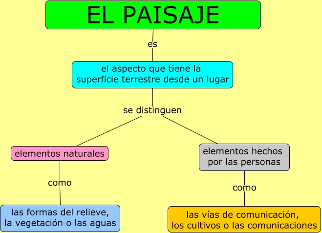 Este Cmap, tiene información relacionada con: El paisaje, elementos hechos por las personas como las vías de comunicación, los cultivos o las comunicaciones, EL PAISAJE es el aspecto que tiene la superficie terrestre desde un lugar, el aspecto que tiene la superficie terrestre desde un lugar se distinguen elementos naturales, el aspecto que tiene la superficie terrestre desde un lugar se distinguen elementos hechos por las personas, elementos naturales como las formas del relieve, la vegetación o las aguas