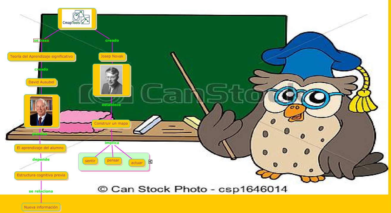 Este Cmap, tiene información relacionada con: Concept mapping, Teoría del Aprendizaje significativo creado David Ausubel, se basa Teoría del Aprendizaje significativo, creado Josep Novak, Estructura cognitiva previa se relaciona Nueva información, Construir un mapa implica actuar, El aprendizaje del alumno depende Estructura cognitiva previa, David Ausubel plantea, Construir un mapa implica sentir, Construir un mapa implica pensar, David Ausubel plantea El aprendizaje del alumno, Josep Novak establece Construir un mapa, Josep Novak establece