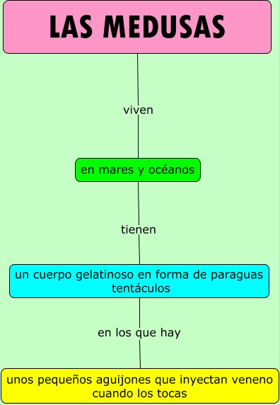 Este Cmap, tiene información relacionada con: Las medusas, en mares y océanos tienen un cuerpo gelatinoso en forma de paraguas tentáculos, un cuerpo gelatinoso en forma de paraguas tentáculos en los que hay unos pequeños aguijones que inyectan veneno cuando los tocas, LAS MEDUSAS viven en mares y océanos