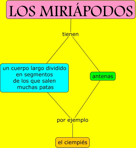 Este Cmap, tiene información relacionada con: Los miriápodos, LOS MIRIÁPODOS tienen antenas, un cuerpo largo dividido en segmentos de los que salen muchas patas por ejemplo el ciempiés, LOS MIRIÁPODOS tienen un cuerpo largo dividido en segmentos de los que salen muchas patas, antenas por ejemplo el ciempiés