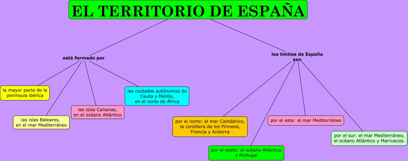 Este Cmap, tiene información relacionada con: El territorio de España, EL TERRITORIO DE ESPAÑA los límites de España son por el este: el mar Mediterráneo, EL TERRITORIO DE ESPAÑA está formado por las ciudades autónomas de Ceuta y Melilla, en el norte de África, EL TERRITORIO DE ESPAÑA está formado por las islas Canarias, en el océano Atlántico, EL TERRITORIO DE ESPAÑA los límites de España son por el norte: el mar Cantábrico, la cordillera de los Pirineos, Francia y Andorra, EL TERRITORIO DE ESPAÑA está formado por la mayor parte de la península ibérica, EL TERRITORIO DE ESPAÑA los límites de España son por el sur: el mar Mediterráneo, el océano Atlántico y Marruecos., EL TERRITORIO DE ESPAÑA los límites de España son por el oeste: el océano Atlántico y Portugal, EL TERRITORIO DE ESPAÑA está formado por las islas Baleares, en el mar Mediterráneo