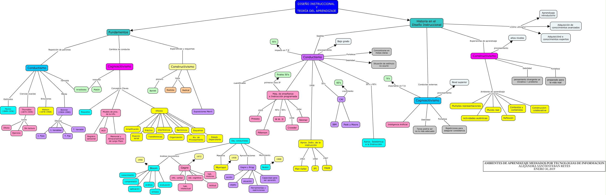 Este Cmap, tiene información relacionada con: Diseño Instruccional y Teoría del Aprendizaje, Constructivismo Ambiente de aprendizaje Mundo real, Cognoscitivismo Conceptos Claves Esquema, Modelo de proc. de la info. ???? Registro sensorial, Historia en el Diseño Instruccional Experiencias de aprendizaje Constructivismo, Skinner (1904-1990) Efectos T. Variable, Bloom ???? conocimiento, Conductismo Ciencias exactas Thorndike (1874-1949), CAI ???? IBM, Gagne ???? 1972, Constructivismo Ambiente de aprendizaje Contextos y contenidos, Maq. de enseñanza e Instrucción programada ???? Péterson, Cognoscitivismo importante en T.A 70's, Obj. conductistas Análisis taxonómico Bloom, Efectos ???? Niv. de Procesamiento, Skinner (1904-1990) Efectos I. Fijos, Efectos ???? Organización, Historia en el Diseño Instruccional ¿Cómo utilizarlo? Adquisición de conocimeintos avanzados, Conductismo Fortaleza Concentrarse en metas claras, Obj. conductistas Aproximaciones Gagne y Brigg, Gagne ???? info. verbal