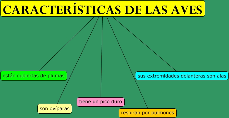 Este Cmap, tiene información relacionada con: Características de las aves, CARACTERÍSTICAS DE LAS AVES sus extremidades delanteras son alas, CARACTERÍSTICAS DE LAS AVES están cubiertas de plumas, CARACTERÍSTICAS DE LAS AVES son ovíparas, CARACTERÍSTICAS DE LAS AVES tiene un pico duro, CARACTERÍSTICAS DE LAS AVES respiran por pulmones