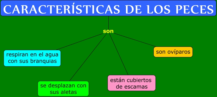 Este Cmap, tiene información relacionada con: Características de los peces, CARACTERÍSTICAS DE LOS PECES son se desplazan con sus aletas, CARACTERÍSTICAS DE LOS PECES son respiran en el agua con sus branquias, CARACTERÍSTICAS DE LOS PECES son son ovíparos, CARACTERÍSTICAS DE LOS PECES son están cubiertos de escamas