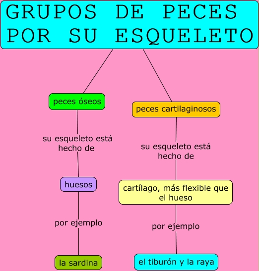 Este Cmap, tiene información relacionada con: Grupos de peces por su esqueleto, peces óseos su esqueleto está hecho de huesos, GRUPOS DE PECES POR SU ESQUELETO peces cartilaginosos, peces cartilaginosos su esqueleto está hecho de cartílago, más flexible que el hueso, cartílago, más flexible que el hueso por ejemplo el tiburón y la raya, GRUPOS DE PECES POR SU ESQUELETO peces óseos, huesos por ejemplo la sardina