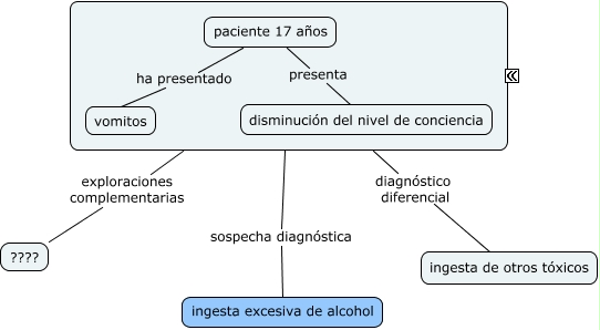 Este Cmap, tiene información relacionada con: Araceli, paciente 17 años presenta disminución del nivel de conciencia, ???? diagnóstico diferencial ingesta de otros tóxicos, paciente 17 años ha presentado vomitos, ???? exploraciones complementarias ????, ???? sospecha diagnóstica ingesta excesiva de alcohol