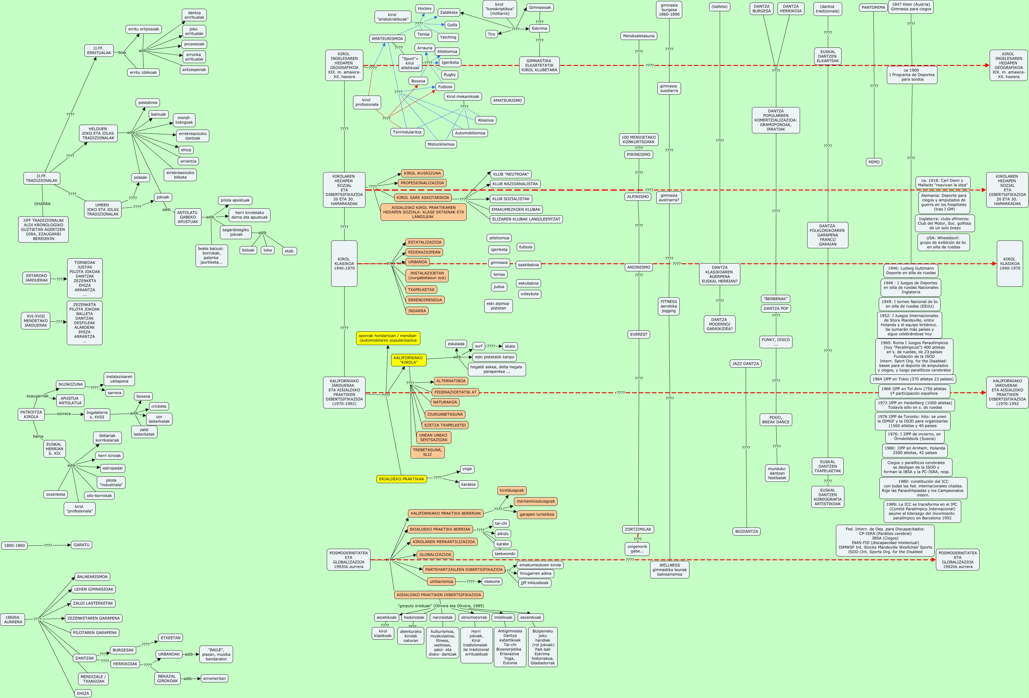 Esse mapa conceitual, produzido no IHMC CmapTools, tem a informação relacionada a: KIROLAREN HISTORIA Eusk, KIROL KLASIKOA 1940-1970 ???? KIROL KLASIKOA 1940-1970, PIRINEISMO ???? ALPINISMO, AMATEURISMOA ???? Motoziklismoa, PARTEHARTZAILEEN DIBERTSIFIKAZIOA ???? emakumezkoen kirola, hedonistak ???? abenturako kirolak naturan, HERRIKOIAK ???? NEKAZAL GIROKOAK, gimnasia burgesa 1860-1890 ???? gimnasia suediarra, kirol "konskriptiboa" (militarra) ???? Tiro, BURGESAK ???? ETXEETAN, kirol profesionala ???? Futbola, KALIFORNIAKO "KIROLA" ???? UNEAN UNEKO SENTSAZIOAK, KIROLAREN HEDAPEN SOZIAL ETA DIBERTSIFIKAZIOA 20 ETA 30. HAMARKADAK ???? PROFESIONALIZAZIOA, "Sport"= kirol atletikoak ???? Arrauna, DANTZAK ???? BURGESAK, KALIFORNIAKO PRAKTIKA BERRRIAK ???? merkantiiizatuagoak, erritu erlijiosoak adib joko erritualak, mistikoak ???? Antigimnasia Dantza katartikoak Tai-chi Bioenerjetika Erlaxazioa Yoga, Eutonia, AMATEURISMOA ???? Futbola, PARTEHARTZAILEEN DIBERTSIFIKAZIOA ???? hirugarren adina, eszenikoak ???? Bizipeneko joku handiak (rol jokoak) Pait-ball Eskrima historiakoa, Gladiadorrak