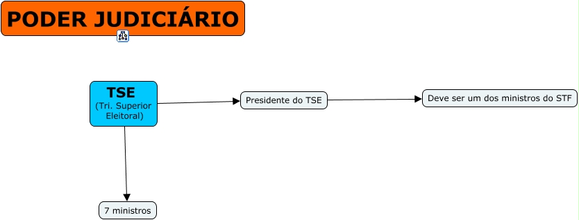 Esse mapa conceitual, produzido no IHMC CmapTools, tem a informação relacionada a: TSE, TSE (Tri. Superior Eleitoral) Presidente do TSE, TSE (Tri. Superior Eleitoral) 7 ministros, Presidente do TSE Deve ser um dos ministros do STF