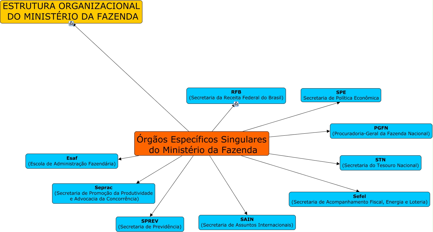 Esse mapa conceitual, produzido no IHMC CmapTools, tem a informação relacionada a: Min. da Faz. - Órgãos Específicos Singulares, Órgãos Específicos Singulares do Ministério da Fazenda Sefel (Secretaria de Acompanhamento Fiscal, Energia e Loteria), Órgãos Específicos Singulares do Ministério da Fazenda SPE Secretaria de Política Econômica, Órgãos Específicos Singulares do Ministério da Fazenda Esaf (Escola de Administração Fazendária), Órgãos Específicos Singulares do Ministério da Fazenda RFB (Secretaria da Receita Federal do Brasil), Órgãos Específicos Singulares do Ministério da Fazenda ESTRUTURA ORGANIZACIONAL DO MINISTÉRIO DA FAZENDA, Órgãos Específicos Singulares do Ministério da Fazenda STN (Secretaria do Tesouro Nacional), Órgãos Específicos Singulares do Ministério da Fazenda SAIN (Secretaria de Assuntos Internacionais), Órgãos Específicos Singulares do Ministério da Fazenda Seprac (Secretaria de Promoção da Produtividade e Advocacia da Concorrência), Órgãos Específicos Singulares do Ministério da Fazenda PGFN (Procuradoria-Geral da Fazenda Nacional), Órgãos Específicos Singulares do Ministério da Fazenda SPREV (Secretaria de Previdência)