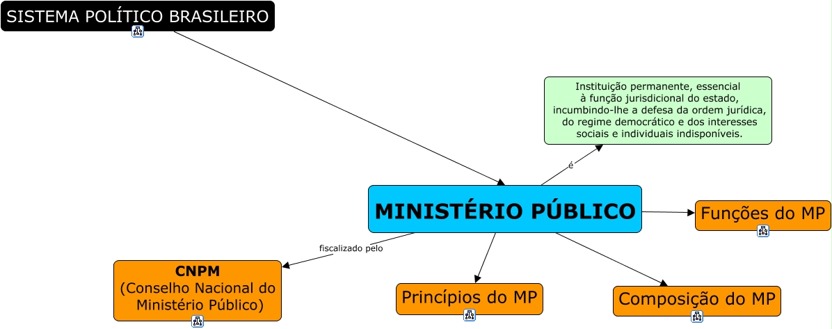 Esse mapa conceitual, produzido no IHMC CmapTools, tem a informação relacionada a: MINISTÉRIO PÚBLICO, MINISTÉRIO PÚBLICO fiscalizado pelo CNPM (Conselho Nacional do Ministério Público), MINISTÉRIO PÚBLICO Composição do MP, MINISTÉRIO PÚBLICO Funções do MP, SISTEMA POLÍTICO BRASILEIRO MINISTÉRIO PÚBLICO, MINISTÉRIO PÚBLICO é Instituição permanente, essencial à função jurisdicional do estado, incumbindo-lhe a defesa da ordem jurídica, do regime democrático e dos interesses sociais e individuais indisponíveis., MINISTÉRIO PÚBLICO Princípios do MP