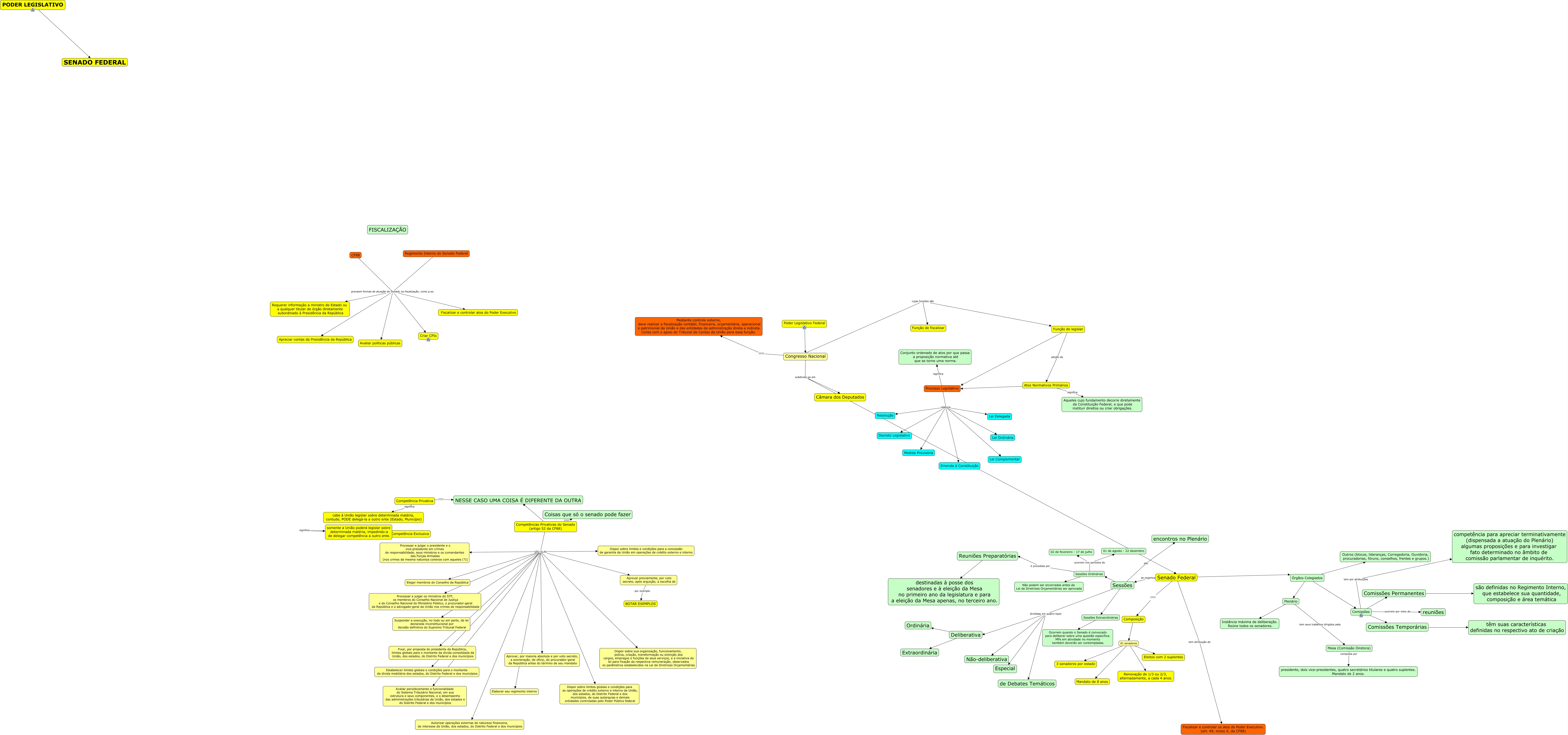 Esse mapa conceitual, produzido no IHMC CmapTools, tem a informação relacionada a: SENADO FEDERAL, Competências Privativas do Senado (artigo 52 da CF88) SÃO ELAS Suspender a execução, no todo ou em parte, de lei declarada inconstitucional por decisão definitiva do Supremo Tribunal Federal, Regimento Interno do Senado Federal preveem formas de atuação do Senado na fiscalização, como p.ex. Requerer informação a ministro de Estado ou a qualquer titular de órgão diretamente subordinado à Presidência da República, Aprovar previamente, por voto secreto, após arguição, a escolha de por exemplo BOTAR EXEMPLOS, Competências Privativas do Senado (artigo 52 da CF88) SÃO ELAS Estabelecer limites globais e condições para o montante da dívida mobiliária dos estados, do Distrito Federal e dos municípios, Processo Legislativo elabora Lei Ordinária, Competências Privativas do Senado (artigo 52 da CF88) SÃO ELAS Aprovar, por maioria absoluta e por voto secreto, a exoneração, de ofício, do procurador-geral da República antes do término de seu mandato, Competências Privativas do Senado (artigo 52 da CF88) ???? Coisas que só o senado pode fazer, Sessões divididas em quatro tipos Deliberativa, Deliberativa Ordinária, Processo Legislativo elabora Lei Complementar, Senado Federal ???? Composição, Processo Legislativo significa Conjunto ordenado de atos por que passa a proposição normativa até que se torne uma norma., Competência Exclusiva significa somente a União poderá legislar sobre determinada matéria, impedindo-a de delegar competência a outro ente., Sessões Sessões Extraordinárias, Senado Federal Órgãos Colegiados, Deliberativa Extraordinária, Sessões Sessões Ordinárias, 81 senadores Mandato de 8 anos, Processo Legislativo elabora Decreto Legislativo, Processo Legislativo elabora Medida Provisória