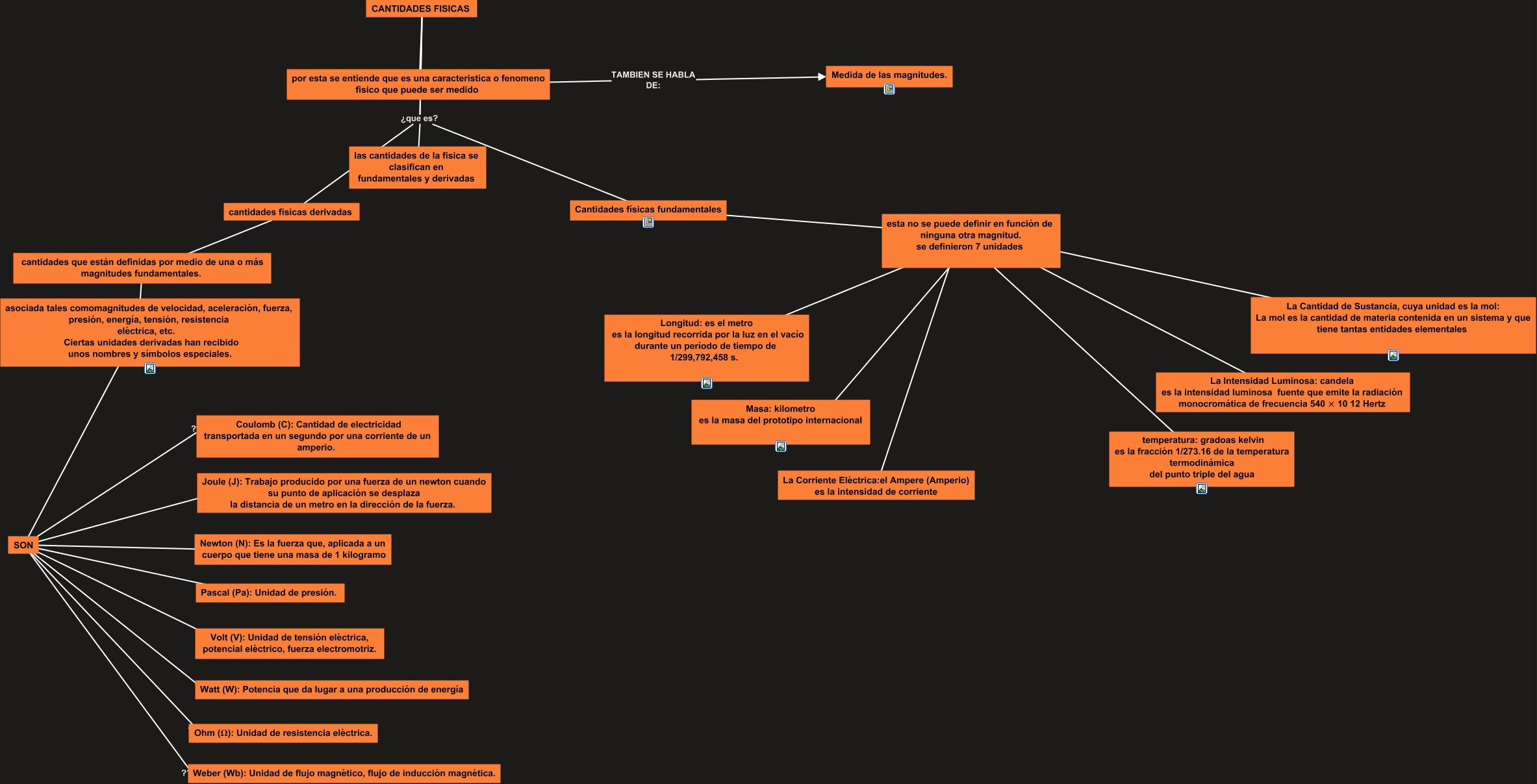 Este Cmap, tiene información relacionada con: cantidades fisica, Longitud: es el metro es la longitud recorrida por la luz en el vacío durante un período de tiempo de 1/299,792,458 s. ???? esta no se puede definir en función de ninguna otra magnitud. se definieron 7 unidades, Cantidades físicas fundamentales ???? esta no se puede definir en función de ninguna otra magnitud. se definieron 7 unidades, SON ???? Watt (W): Potencia que da lugar a una producción de energía, La Corriente Eléctrica:el Ampere (Amperio) es la intensidad de corriente ???? esta no se puede definir en función de ninguna otra magnitud. se definieron 7 unidades, CANTIDADES FISICAS ¿que es? cantidades fisicas derivadas, SON ???? Volt (V): Unidad de tensión eléctrica, potencial eléctrico, fuerza electromotriz., La Cantidad de Sustancia, cuya unidad es la mol: La mol es la cantidad de materia contenida en un sistema y que tiene tantas entidades elementales ???? esta no se puede definir en función de ninguna otra magnitud. se definieron 7 unidades, SON ???? Pascal (Pa): Unidad de presión., por esta se entiende que es una caracteristica o fenomeno fisico que puede ser medido TAMBIEN SE HABLA DE: Medida de las magnitudes., CANTIDADES FISICAS ¿que es? las cantidades de la fisica se clasifican en fundamentales y derivadas, CANTIDADES FISICAS ¿que es? Cantidades físicas fundamentales, SON ???? Ohm (Ω): Unidad de resistencia eléctrica., La Corriente Eléctrica:el Ampere (Amperio) es la intensidad de corriente ???? esta no se puede definir en función de ninguna otra magnitud. se definieron 7 unidades, CANTIDADES FISICAS ¿que es? las cantidades de la fisica se clasifican en fundamentales y derivadas, SON ???? Weber (Wb): Unidad de flujo magnético, flujo de inducción magnética., SON ???? Coulomb (C): Cantidad de electricidad transportada en un segundo por una corriente de un amperio., cantidades que están definidas por medio de una o más magnitudes fundamentales. ???? asociada tales comomagnitudes de velocidad, aceleración, fuerza, presión, energía, tensión, resistencia eléctrica, etc. Ciertas unidades derivadas han recibido unos nombres y símbolos especiales., asociada tales comomagnitudes de velocidad, aceleración, fuerza, presión, energía, tensión, resistencia eléctrica, etc. Ciertas unidades derivadas han recibido unos nombres y símbolos especiales. ???? SON, temperatura: gradoas kelvin es la fracción 1/273.16 de la temperatura termodinámica del punto triple del agua ???? esta no se puede definir en función de ninguna otra magnitud. se definieron 7 unidades, SON ???? Newton (N): Es la fuerza que, aplicada a un cuerpo que tiene una masa de 1 kilogramo