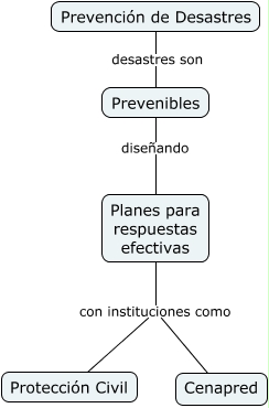 Este Cmap, tiene información relacionada con: Prevención de Desastres, Prevenibles diseñando Planes para respuestas efectivas, Planes para respuestas efectivas con instituciones como Cenapred, Prevención de Desastres desastres son Prevenibles, Planes para respuestas efectivas con instituciones como Protección Civil