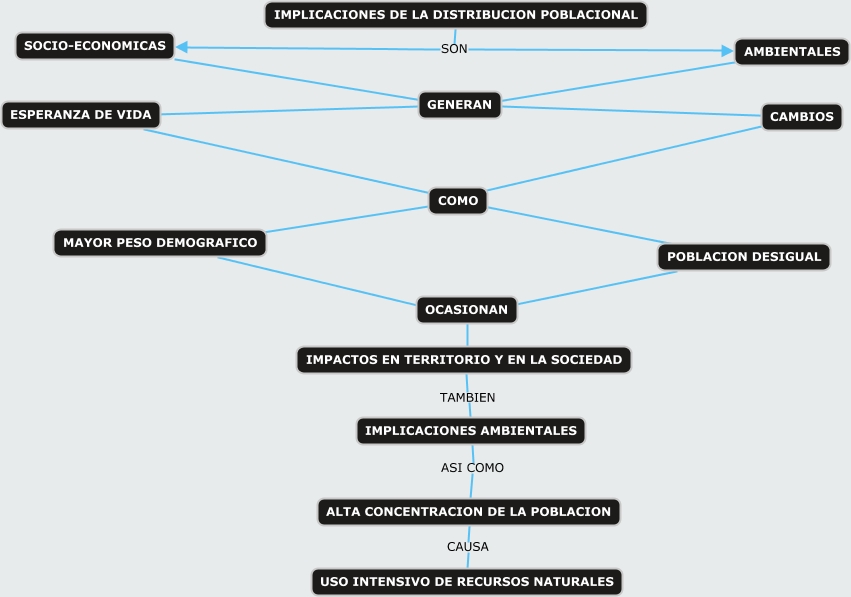 Este Cmap, tiene información relacionada con: IMPLICACIONES DE LA DISTRIBUCION POBLACIONAL, COMO ???? MAYOR PESO DEMOGRAFICO, IMPLICACIONES DE LA DISTRIBUCION POBLACIONAL SON SOCIO-ECONOMICAS, OCASIONAN ???? IMPACTOS EN TERRITORIO Y EN LA SOCIEDAD, AMBIENTALES ???? GENERAN, COMO ???? POBLACION DESIGUAL, SOCIO-ECONOMICAS ???? GENERAN, IMPLICACIONES DE LA DISTRIBUCION POBLACIONAL SON AMBIENTALES, IMPACTOS EN TERRITORIO Y EN LA SOCIEDAD TAMBIEN IMPLICACIONES AMBIENTALES, MAYOR PESO DEMOGRAFICO ???? OCASIONAN, IMPLICACIONES AMBIENTALES ASI COMO ALTA CONCENTRACION DE LA POBLACION, CAMBIOS ???? COMO, ESPERANZA DE VIDA ???? COMO, GENERAN ???? ESPERANZA DE VIDA, ALTA CONCENTRACION DE LA POBLACION CAUSA USO INTENSIVO DE RECURSOS NATURALES, POBLACION DESIGUAL ???? OCASIONAN, GENERAN ???? CAMBIOS