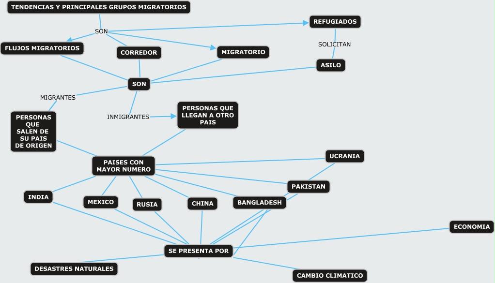 Este Cmap, tiene información relacionada con: TENDENCIAS Y PRINCIPALES GRUPOS MIGRATORIOS, CHINA ???? SE PRESENTA POR, PERSONAS QUE LLEGAN A OTRO PAIS ???? PAISES CON MAYOR NUMERO, PAISES CON MAYOR NUMERO ???? BANGLADESH, ASILO ???? SON, CORREDOR ???? SON, FLUJOS MIGRATORIOS ???? SON, MEXICO ???? SE PRESENTA POR, PERSONAS QUE SALEN DE SU PAIS DE ORIGEN ???? PAISES CON MAYOR NUMERO, INDIA ???? SE PRESENTA POR, PAISES CON MAYOR NUMERO ???? RUSIA, MIGRATORIO ???? SON, PAKISTAN ???? SE PRESENTA POR, PAISES CON MAYOR NUMERO ???? INDIA, UCRANIA ???? SE PRESENTA POR, SON INMIGRANTES PERSONAS QUE LLEGAN A OTRO PAIS, SON MIGRANTES PERSONAS QUE SALEN DE SU PAIS DE ORIGEN, SE PRESENTA POR ???? CAMBIO CLIMATICO, PAISES CON MAYOR NUMERO ???? MEXICO, CORREDOR ???? SON, TENDENCIAS Y PRINCIPALES GRUPOS MIGRATORIOS SON REFUGIADOS