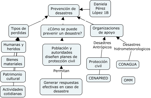 Este Cmap, tiene información relacionada con: Prevención de desastres, Bienes materiales ???? Tipos de perdidas, Población y autoridades diseñen planes de protección civil ¿Cómo se puede prevenir un desastre?, Daniela Pérez López 1B Prevención de desastres, Tipos de perdidas Prevención de desastres, Actividades cotidianas Patrimonio cultural, Actividades cotidianas ???? Tipos de perdidas, Generar respuestas efectivas en caso de desastre Permitan Población y autoridades diseñen planes de protección civil, Organizaciones de apoyo Prevención de desastres, Patrimonio cultural Tipos de perdidas, Patrimonio cultural Tipos de perdidas, CONAGUA Desastres hidrometeorologicos Organizaciones de apoyo, ¿Cómo se puede prevenir un desastre? Prevención de desastres, CENAPRED Desastres Antrópicos Organizaciones de apoyo, Actividades cotidianas ???? Tipos de perdidas