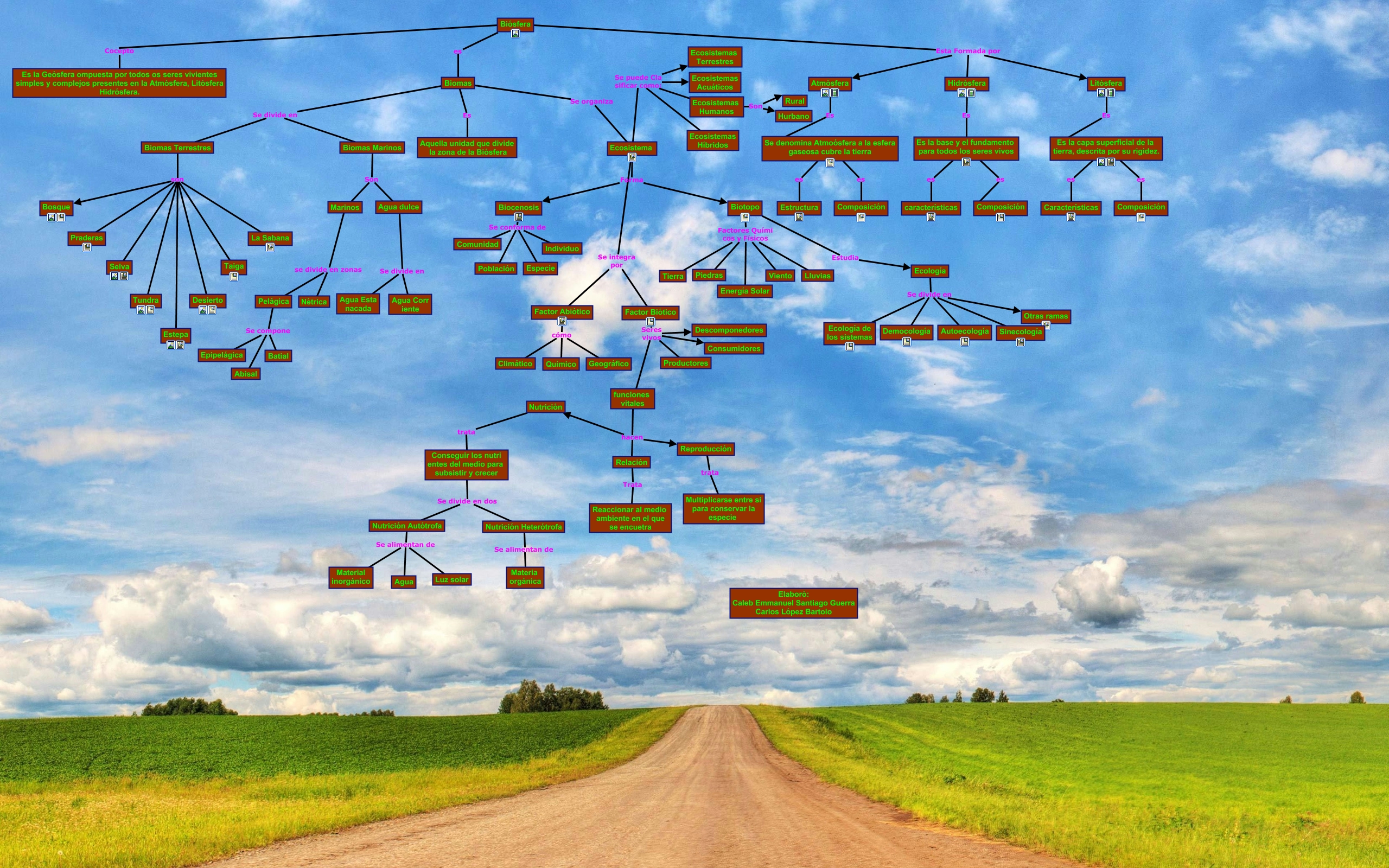 Este Cmap, tiene información relacionada con: Mapa Conceptual De La Biósfera, Pelágica Se compone Epipelágica, Factor Abiótico cómo Climático, Biomas Es Aquella unidad que divide la zona de la Biósfera, Biomas Terrestres son Estepa, Ecología Se divide en Democología, Marinos se divide en zonas Nétrica, Es la capa superficial de la tierra, descrita por su rigidez. es Composición, Biocenosis Se conforma de Especie, Ecosistema Se puede Cla sificar como: Ecosistemas Terrestres, Biotopo Estudia Ecología, Biocenosis Se conforma de Población, Biomas Se organiza Ecosistema, Biósfera Esta Formada por Hidrósfera, Ecosistema Forma Biocenosis, Biotopo Factores Quími cos y Físicos Viento, funciones vitales hacen Nutrición, Biotopo Factores Quími cos y Físicos Tierra, Ecosistema Se integra por Factor Biótico, Biotopo Factores Quími cos y Físicos Energía Solar, Ecosistema Se puede Cla sificar como: Ecosistemas Híbridos