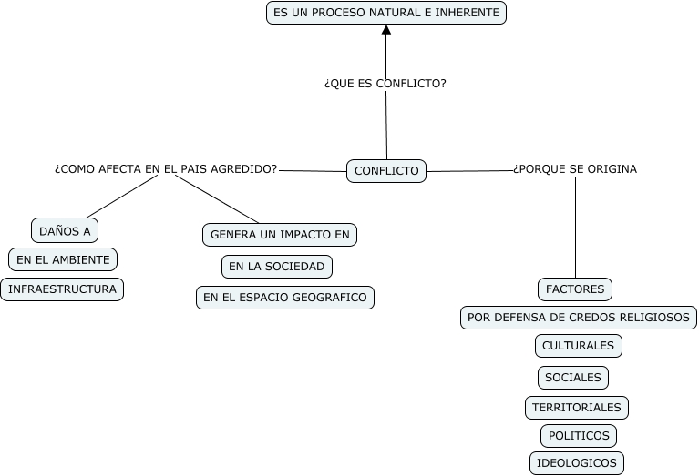 Este Cmap, tiene información relacionada con: CARACTERISTICAS DE UN CONFLICTO, CONFLICTO ¿PORQUE SE ORIGINA FACTORES, CONFLICTO ¿QUE ES CONFLICTO? ES UN PROCESO NATURAL E INHERENTE, CONFLICTO ¿COMO AFECTA EN EL PAIS AGREDIDO? GENERA UN IMPACTO EN, CONFLICTO ¿COMO AFECTA EN EL PAIS AGREDIDO? DAÑOS A