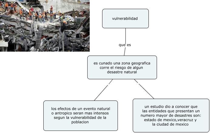 Este Cmap, tiene información relacionada con: vulnerabilidad, es cunado una zona geografica corre el riesgo de algun desastre natural los efectos de un evento natural o antropico seran mas intensos segun la vulnerabilidad de la poblacion, es cunado una zona geografica corre el riesgo de algun desastre natural un estudio dio a conocer que las entidades que presentan un numero mayor de desastres son: estado de mexico,veracruz y la ciudad de mexico, vulnerabilidad que es es cunado una zona geografica corre el riesgo de algun desastre natural