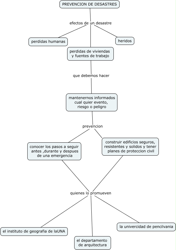Este Cmap, tiene información relacionada con: prevencion, conocer los pasos a seguir antes ,durante y despues de una emergencia quienes lo promueven la univercidad de pencilvania, construir edificios seguros, resistentes y solidos y tener planes de proteccion civil quienes lo promueven la univercidad de pencilvania, mantenernos informados cual quier evento, riesgo o peligro prevencion construir edificios seguros, resistentes y solidos y tener planes de proteccion civil, perdidas de viviendas y fuentes de trabajo que debemos hacer mantenernos informados cual quier evento, riesgo o peligro, conocer los pasos a seguir antes ,durante y despues de una emergencia quienes lo promueven el departamento de arquitectura, construir edificios seguros, resistentes y solidos y tener planes de proteccion civil quienes lo promueven el departamento de arquitectura, PREVENCION DE DESASTRES efectos de un desastre heridos, mantenernos informados cual quier evento, riesgo o peligro prevencion conocer los pasos a seguir antes ,durante y despues de una emergencia, PREVENCION DE DESASTRES efectos de un desastre perdidas humanas, PREVENCION DE DESASTRES efectos de un desastre perdidas de viviendas y fuentes de trabajo, construir edificios seguros, resistentes y solidos y tener planes de proteccion civil quienes lo promueven el instituto de geografia de laUNA, conocer los pasos a seguir antes ,durante y despues de una emergencia quienes lo promueven el instituto de geografia de laUNA