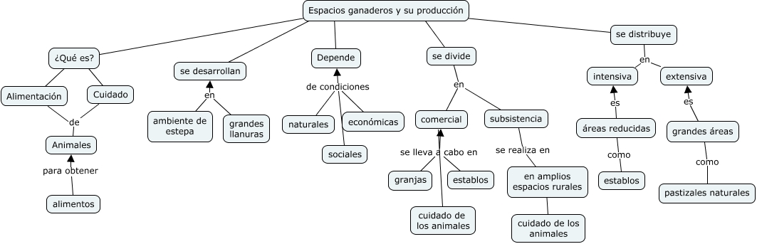 Este Cmap, tiene información relacionada con: Ganaderia parte 1, granjas se lleva a cabo en establos, ambiente de estepa en se desarrollan, ¿Qué es? ???? Espacios ganaderos y su producción, Alimentación de Animales, se divide en comercial, naturales de condiciones económicas, se distribuye en extensiva, grandes áreas como pastizales naturales, se divide en subsistencia, Cuidado ???? ¿Qué es?, naturales de condiciones Depende, grandes áreas es extensiva, comercial ???? cuidado de los animales, Depende ???? Espacios ganaderos y su producción, se distribuye ???? Espacios ganaderos y su producción, se distribuye en intensiva, alimentos para obtener Animales, naturales de condiciones sociales, subsistencia se realiza en en amplios espacios rurales, granjas se lleva a cabo en comercial