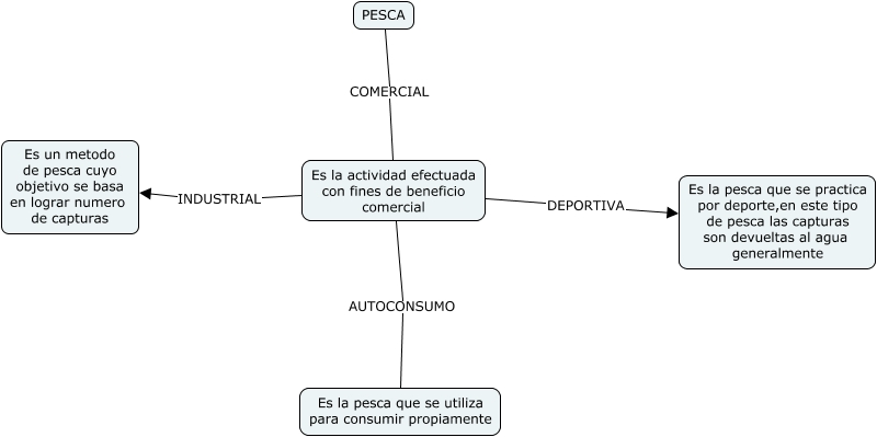Este Cmap, tiene información relacionada con: 4 pescas, PESCA COMERCIAL Es la actividad efectuada con fines de beneficio comercial, Es la actividad efectuada con fines de beneficio comercial INDUSTRIAL Es un metodo de pesca cuyo objetivo se basa en lograr numero de capturas, Es la actividad efectuada con fines de beneficio comercial AUTOCONSUMO Es la pesca que se utiliza para consumir propiamente, Es la actividad efectuada con fines de beneficio comercial DEPORTIVA Es la pesca que se practica por deporte,en este tipo de pesca las capturas son devueltas al agua generalmente