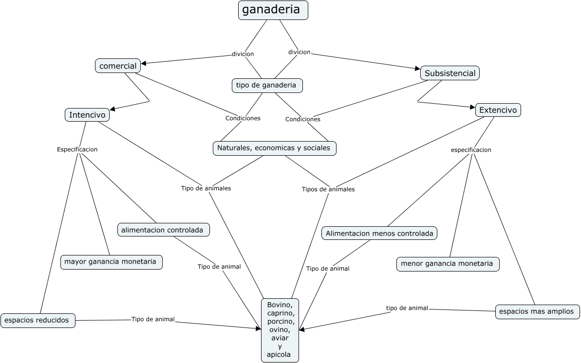 Este Cmap, tiene información relacionada con: ganaderia, espacios mas amplios tipo de animal Bovino, caprino, porcino, ovino, aviar y apicola, Intencivo Especificacion mayor ganancia monetaria, Subsistencial Extencivo, tipo de ganaderia Condiciones Naturales, economicas y sociales, Naturales, economicas y sociales Tipos de animales Bovino, caprino, porcino, ovino, aviar y apicola, Extencivo especificacion menor ganancia monetaria, Intencivo Especificacion espacios reducidos, ganaderia divicion tipo de ganaderia, comercial Condiciones Naturales, economicas y sociales, ganaderia divicion comercial, espacios reducidos Tipo de animal Bovino, caprino, porcino, ovino, aviar y apicola, alimentacion controlada Tipo de animal Bovino, caprino, porcino, ovino, aviar y apicola, tipo de ganaderia Condiciones Naturales, economicas y sociales, Extencivo Tipos de animales Bovino, caprino, porcino, ovino, aviar y apicola, Alimentacion menos controlada Tipo de animal Bovino, caprino, porcino, ovino, aviar y apicola, Intencivo Especificacion alimentacion controlada, Extencivo especificacion espacios mas amplios, Subsistencial Condiciones Naturales, economicas y sociales, ganaderia divicion tipo de ganaderia, Intencivo Tipo de animales Bovino, caprino, porcino, ovino, aviar y apicola