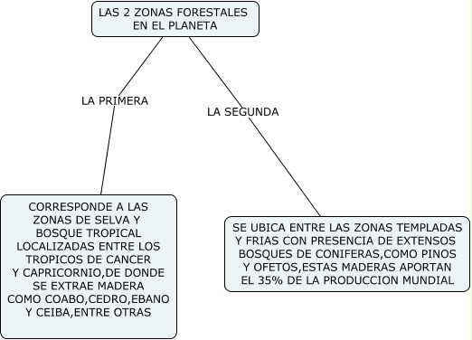 Este Cmap, tiene información relacionada con: AREAS FORESTALES, LAS 2 ZONAS FORESTALES EN EL PLANETA LA PRIMERA CORRESPONDE A LAS ZONAS DE SELVA Y BOSQUE TROPICAL LOCALIZADAS ENTRE LOS TROPICOS DE CANCER Y CAPRICORNIO,DE DONDE SE EXTRAE MADERA COMO COABO,CEDRO,EBANO Y CEIBA,ENTRE OTRAS, LAS 2 ZONAS FORESTALES EN EL PLANETA LA SEGUNDA SE UBICA ENTRE LAS ZONAS TEMPLADAS Y FRIAS CON PRESENCIA DE EXTENSOS BOSQUES DE CONIFERAS,COMO PINOS Y OFETOS,ESTAS MADERAS APORTAN EL 35% DE LA PRODUCCION MUNDIAL