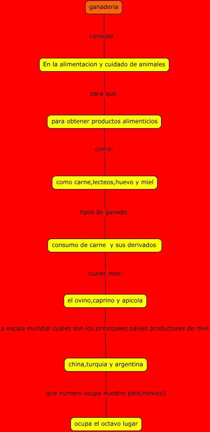 Este Cmap, tiene información relacionada con: ganaderia, china,turquia y argentina que numero ocupa nuestro pais(mexico) ocupa el octavo lugar, como carne,lecteos,huevo y miel tipos de ganado: consumo de carne y sus derivados, el ovino,caprino y apicola a escala mundial cuales son los principales paises productores de miel china,turquia y argentina, En la alimentacion y cuidado de animales para que: para obtener productos alimenticios, ganaderia consiste : En la alimentacion y cuidado de animales, para obtener productos alimenticios como: como carne,lecteos,huevo y miel, consumo de carne y sus derivados cuales mas: el ovino,caprino y apicola