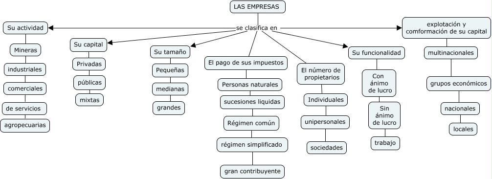 Este Cmap, tiene información relacionada con: las empresas, LAS EMPRESAS se clasifica en El pago de sus impuestos, LAS EMPRESAS se clasifica en explotación y comformación de su capital, explotación y comformación de su capital ???? multinacionales, LAS EMPRESAS se clasifica en El número de propietarios, El pago de sus impuestos ???? Personas naturales, Su funcionalidad ???? Con ánimo de lucro, LAS EMPRESAS se clasifica en Su funcionalidad, Su actividad ???? Mineras, grupos económicos ???? nacionales, LAS EMPRESAS se clasifica en Su tamaño, Sin ánimo de lucro ???? trabajo, Personas naturales ???? sucesiones liquidas, Pequeñas ???? medianas, Individuales ???? unipersonales, LAS EMPRESAS se clasifica en Su capital, Con ánimo de lucro ???? Sin ánimo de lucro, LAS EMPRESAS se clasifica en Su actividad, Su tamaño ???? Pequeñas, nacionales ???? locales, Privadas ???? públicas
