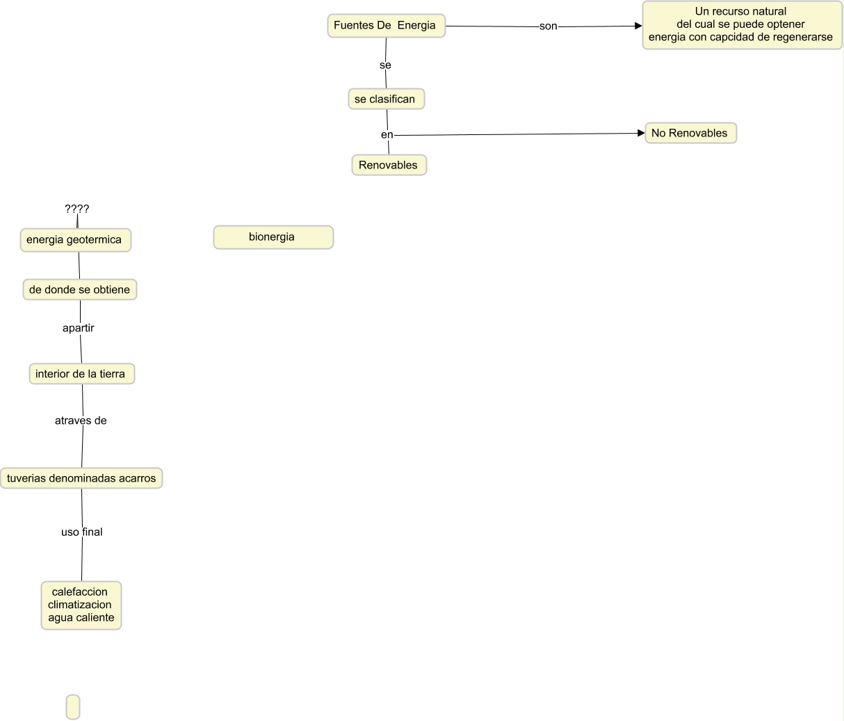 Este Cmap, tiene información relacionada con: Fuentes de Energias, de donde se obtiene ???? energia geotermica, tuverias denominadas acarros uso final calefaccion climatizacion agua caliente, Fuentes De Energia son Un recurso natural del cual se puede optener energia con capcidad de regenerarse, interior de la tierra atraves de tuverias denominadas acarros, Fuentes De Energia se se clasifican, se clasifican en Renovables, se clasifican en No Renovables, de donde se obtiene apartir interior de la tierra