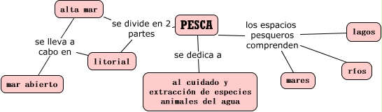Este Cmap, tiene información relacionada con: pesca, mar abierto se lleva a cabo en litorial, lagos los espacios pesqueros comprenden mares, mar abierto se lleva a cabo en alta mar, litorial se divide en 2 partes alta mar, lagos los espacios pesqueros comprenden ríos, litorial se divide en 2 partes PESCA, lagos los espacios pesqueros comprenden PESCA, al cuidado y extracción de especies animales del agua se dedica a PESCA