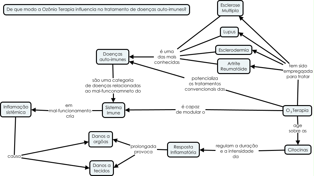 Esse mapa conceitual, produzido no IHMC CmapTools, tem a informação relacionada a: Sistema Auto-imune, <math xmlns="http://www.w3.org/1998/Math/MathML"> <mmultiscripts> <mtext> O </mtext> <mtext> 3 </mtext> <none/> </mmultiscripts> <mtext> Terapia </mtext> </math> tem sido empregqada para tratar Esclerodermia, Resposta Inflamatória prolongada provoca Danos a tecidos, Esclerodermia é uma das mais conhecidas Doenças auto-imunes, <math xmlns="http://www.w3.org/1998/Math/MathML"> <mmultiscripts> <mtext> O </mtext> <mtext> 3 </mtext> <none/> </mmultiscripts> <mtext> Terapia </mtext> </math> tem sido empregqada para tratar Lupus, <math xmlns="http://www.w3.org/1998/Math/MathML"> <mmultiscripts> <mtext> O </mtext> <mtext> 3 </mtext> <none/> </mmultiscripts> <mtext> Terapia </mtext> </math> potencializa os tratamentos convencionais das Doenças auto-imunes, <math xmlns="http://www.w3.org/1998/Math/MathML"> <mmultiscripts> <mtext> O </mtext> <mtext> 3 </mtext> <none/> </mmultiscripts> <mtext> Terapia </mtext> </math> é capaz de modular o Sistema Imune, Doenças auto-imunes são uma categoria de doenças relacionadas ao mal-funconamneto do Sistema Imune, Inflamação sistêmica causa Danos a tecidos, <math xmlns="http://www.w3.org/1998/Math/MathML"> <mmultiscripts> <mtext> O </mtext> <mtext> 3 </mtext> <none/> </mmultiscripts> <mtext> Terapia </mtext> </math> tem sido empregqada para tratar Artrite Reumatóide, <math xmlns="http://www.w3.org/1998/Math/MathML"> <mmultiscripts> <mtext> O </mtext> <mtext> 3 </mtext> <none/> </mmultiscripts> <mtext> Terapia </mtext> </math> tem sido empregqada para tratar Esclerose Multipla, Citocinas regulam a duração e a intensidade da Resposta Inflamatória, Resposta Inflamatória prolongada provoca Danos a orgõas, Artrite Reumatóide é uma das mais conhecidas Doenças auto-imunes, Lupus é uma das mais conhecidas Doenças auto-imunes, <math xmlns="http://www.w3.org/1998/Math/MathML"> <mmultiscripts> <mtext> O </mtext> <mtext> 3 </mtext> <none/> </mmultiscripts> <mtext> Terapia </mtext> </math> age sobre as Citocinas, Sistema Imune em mal-funcionamento cria Inflamação sistêmica, Esclerose Multipla é uma das mais conhecidas Doenças auto-imunes, Inflamação sistêmica causa Danos a orgõas