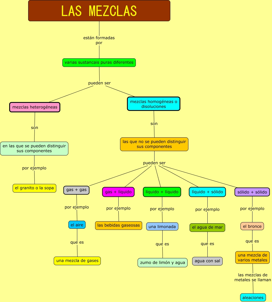 Este Cmap, tiene información relacionada con: Las mezclas, sólido + sólido por ejemplo el bronce, varias sustancais puras diferentes pueden ser mezclas homogéneas o disoluciones, mezclas heterogéneas son en las que se pueden distinguir sus componentes, el aire que es una mezcla de gases, una mezcla de varios metales las mezclas de metales se llaman aleaciones, LAS MEZCLAS están formadas por varias sustancais puras diferentes, el bronce que es una mezcla de varios metales, líquido + sólido por ejemplo el agua de mar, en las que se pueden distinguir sus componentes por ejemplo el granito o la sopa, mezclas homogéneas o disoluciones son las que no se pueden distinguir sus componentes, el agua de mar que es agua con sal, las que no se pueden distinguir sus componentes pueden ser sólido + sólido, gas + gas por ejemplo el aire, una limonada que es zumo de limón y agua, las que no se pueden distinguir sus componentes pueden ser gas + gas, líquido + líquido por ejemplo una limonada, varias sustancais puras diferentes pueden ser mezclas heterogéneas, las que no se pueden distinguir sus componentes pueden ser gas + líquido, las que no se pueden distinguir sus componentes pueden ser líquido + sólido, gas + líquido por ejemplo las bebidas gaseosas
