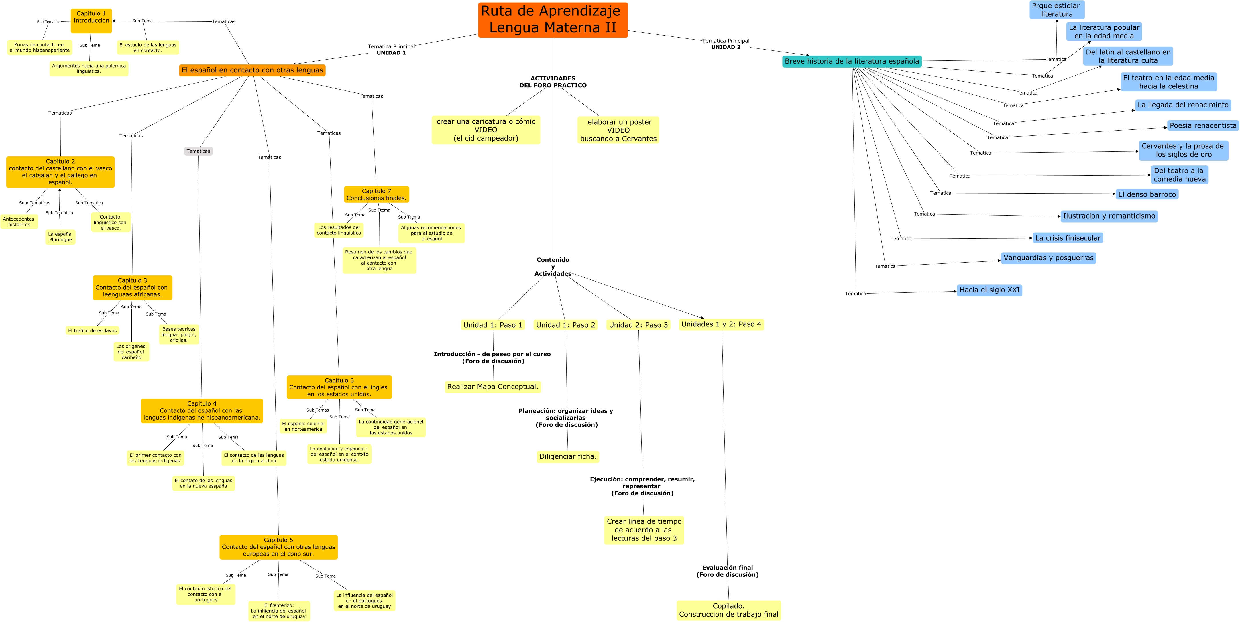 Este Cmap, tiene información relacionada con: Lengua Materna 2, El español en contacto con otras lenguas ???? Capitulo 4 Contacto del español con las lenguas indigenas he hispanoamericana., Capitulo 7 Conclusiones finales. Sub Ttema Resumen de los cambios que caracterizan al español al contacto con otra lengua, Unidades 1 y 2: Paso 4 Evaluación final (Foro de discusión) Copilado. Construccion de trabajo final, Ruta de Aprendizaje Lengua Materna II Tematica Principal UNIDAD 2 Breve historia de la literatura española, Breve historia de la literatura española Tematica Ilustracion y romanticismo, Breve historia de la literatura española Tematica La literatura popular en la edad media, Capitulo 3 Contacto del español con leenguaas africanas. Sub Tema El trafico de esclavos, Capitulo 1 Introduccion Sub Tema El estudio de las lenguas en contacto., El español en contacto con otras lenguas Tematicas Capitulo 3 Contacto del español con leenguaas africanas., Capitulo 6 Contacto del español con el ingles en los estados unidos. Sub Tema La continuidad generacionel del español en los estados unidos, Breve historia de la literatura española Tematica Del latin al castellano en la literatura culta, Capitulo 5 Contacto del español con otras lenguas europeas en el cono sur. Sub Tema La influencia del español en el portugues en el norte de uruguay, Capitulo 1 Introduccion Sub Tema Argumentos hacia una polemica linguistica., Breve historia de la literatura española Tematica Poesia renacentista, Ruta de Aprendizaje Lengua Materna II ACTIVIDADES DEL FORO PRACTICO elaborar un poster VIDEO buscando a Cervantes, Capitulo 6 Contacto del español con el ingles en los estados unidos. Sub Temas El español colonial en norteamerica, Ruta de Aprendizaje Lengua Materna II Contenido y Actividades Unidad 1: Paso 2, Capitulo 2 contacto del castellano con el vasco el catsalan y el gallego en español. Sum Tematicas Antecedentes historicos, Unidad 2: Paso 3 Ejecución: comprender, resumir, representar (Foro de discusión) Crear linea de tiempo de acuerdo a las lecturas del paso 3, Capitulo 4 Contacto del español con las lenguas indigenas he hispanoamericana. Sub Tema El contato de las lenguas en la nueva esspaña