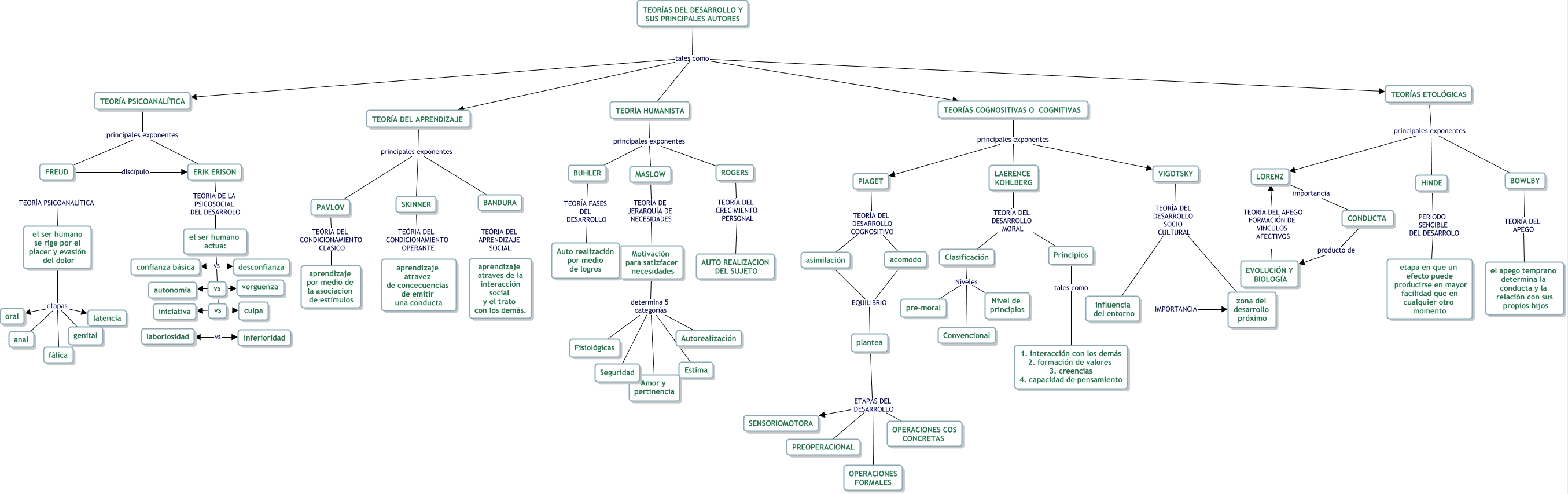 Este Cmap, tiene información relacionada con: TEORIAS DEL DESARROLLO HUMANO, VIGOTSKY TEORÍA DEL DESARROLLO SOCIO CULTURAL influencia del entorno, TEORÍAS DEL DESARROLLO Y SUS PRINCIPALES AUTORES tales como TEORÍA DEL APRENDIZAJE, VIGOTSKY TEORÍA DEL DESARROLLO SOCIO CULTURAL zona del desarrollo próximo, el ser humano actua: vs desconfianza, TEORÍA HUMANISTA principales exponentes ROGERS, Clasificación Niveles pre-moral, PIAGET TEORÍA DEL DESARROLLO COGNOSITIVO asimilación, plantea ETAPAS DEL DESARROLLO PREOPERACIONAL, vs vs culpa, TEORÍA PSICOANALÍTICA principales exponentes ERIK ERISON, BOWLBY TEORÍA DEL APEGO el apego temprano determina la conducta y la relación con sus propios hijos, TEORÍA DEL APRENDIZAJE principales exponentes PAVLOV, el ser humano se rige por el placer y evasión del dolor etapas fálica, asimilación EQUILIBRIO plantea, el ser humano se rige por el placer y evasión del dolor etapas anal, CONDUCTA producto de EVOLUCIÓN Y BIOLOGÍA, Motivación para satizfacer necesidades determina 5 categorías Estima, TEORÍAS DEL DESARROLLO Y SUS PRINCIPALES AUTORES tales como TEORÍAS ETOLÓGICAS, LAERENCE KOHLBERG TEORÍA DEL DESARROLLO MORAL Principios, TEORÍAS DEL DESARROLLO Y SUS PRINCIPALES AUTORES tales como TEORÍA HUMANISTA