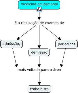 Esse mapa conceitual, produzido no IHMC CmapTools, tem a informação relacionada a: o que é medicina ocupacional, medicina ocupacional É a realização de exames de periódicos, demissão mais voltado para a área trabalhista, medicina ocupacional É a realização de exames de demissão, admissão, mais voltado para a área trabalhista, medicina ocupacional É a realização de exames de admissão,, periódicos mais voltado para a área trabalhista