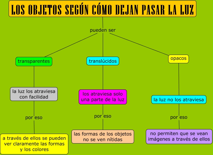 Este Cmap, tiene información relacionada con: Los objetos según cómo dejan pasar la luz, la luz no los atraviesa por eso no permiten que se vean imágenes a través de ellos, LOS OBJETOS SEGÚN CÓMO DEJAN PASAR LA LUZ pueden ser opacos, la luz los atraviesa con facilidad por eso a través de ellos se pueden ver claramente las formas y los colores, opacos la luz no los atraviesa, translúcidos los atraviesa solo una parte de la luz, LOS OBJETOS SEGÚN CÓMO DEJAN PASAR LA LUZ pueden ser transparentes, transparentes la luz los atraviesa con facilidad, los atraviesa solo una parte de la luz por eso las formas de los objetos no se ven nítidas, LOS OBJETOS SEGÚN CÓMO DEJAN PASAR LA LUZ pueden ser translúcidos