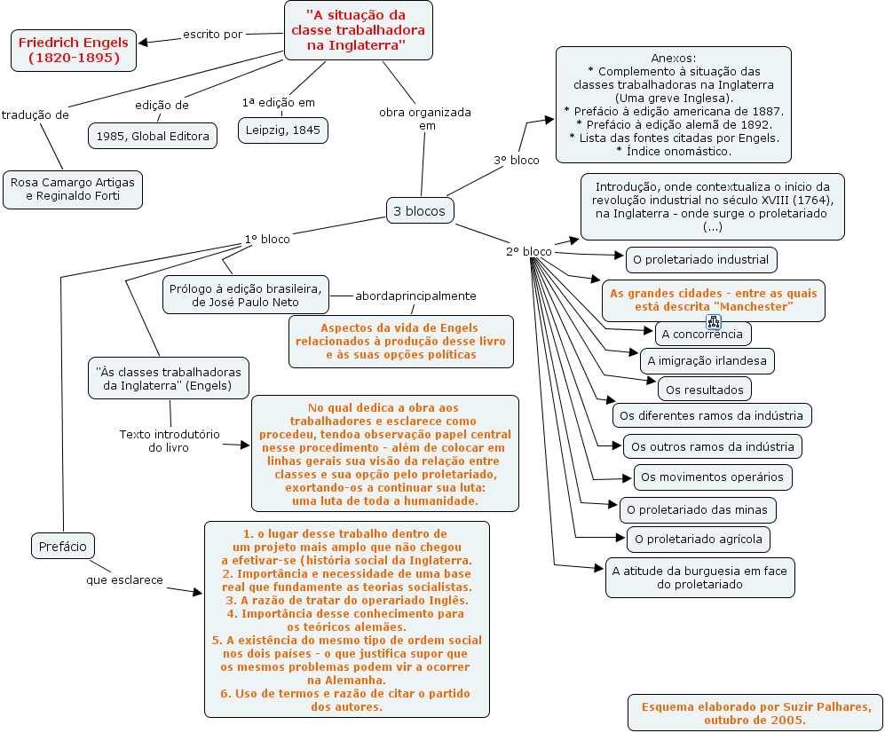 A situação da classe trabalhadora na Inglaterra, 3 blocos 1° bloco Prefácio, "A situação da classe trabalhadora na Inglaterra" 1ª edição em Leipzig, 1845, 3 blocos 2° bloco A imigração irlandesa, 3 blocos 2° bloco O proletariado industrial, 3 blocos 2° bloco Introdução, onde contextualiza o início da revolução industrial no século XVIII (1764), na Inglaterra - onde surge o proletariado (...), 3 blocos 3° bloco Anexos: * Complemento à situação das classes trabalhadoras na Inglaterra (Uma greve Inglesa). * Prefácio à edição americana de 1887. * Prefácio à edição alemã de 1892. * Lista das fontes citadas por Engels. * �?ndice onomástico., Prólogo à edição brasileira, de José Paulo Neto abordaprincipalmente Aspectos da vida de Engels relacionados à produção desse livro e às suas opções políticas, "A situação da classe trabalhadora na Inglaterra" obra organizada em 3 blocos, "A situação da classe trabalhadora na Inglaterra" escrito por Friedrich Engels (1820-1895), 3 blocos 2° bloco Os diferentes ramos da indústria