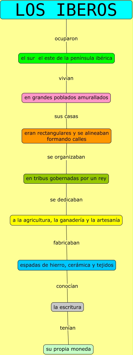 Este Cmap, tiene información relacionada con: Los iberos, la escritura tenían su propia moneda, en tribus gobernadas por un rey se dedicaban a la agricultura, la ganadería y la artesanía, en grandes poblados amurallados sus casas eran rectangulares y se alineaban formando calles, eran rectangulares y se alineaban formando calles se organizaban en tribus gobernadas por un rey, espadas de hierro, cerámica y tejidos conocían la escritura, LOS IBEROS ocuparon el sur el este de la península ibérica, a la agricultura, la ganadería y la artesanía fabricaban espadas de hierro, cerámica y tejidos, el sur el este de la península ibérica vivían en grandes poblados amurallados