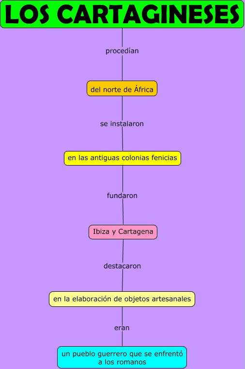 Este Cmap, tiene información relacionada con: Los cartagineses, del norte de África se instalaron en las antiguas colonias fenicias, LOS CARTAGINESES procedían del norte de África, en la elaboración de objetos artesanales eran un pueblo guerrero que se enfrentó a los romanos, en las antiguas colonias fenicias fundaron Ibiza y Cartagena, Ibiza y Cartagena destacaron en la elaboración de objetos artesanales