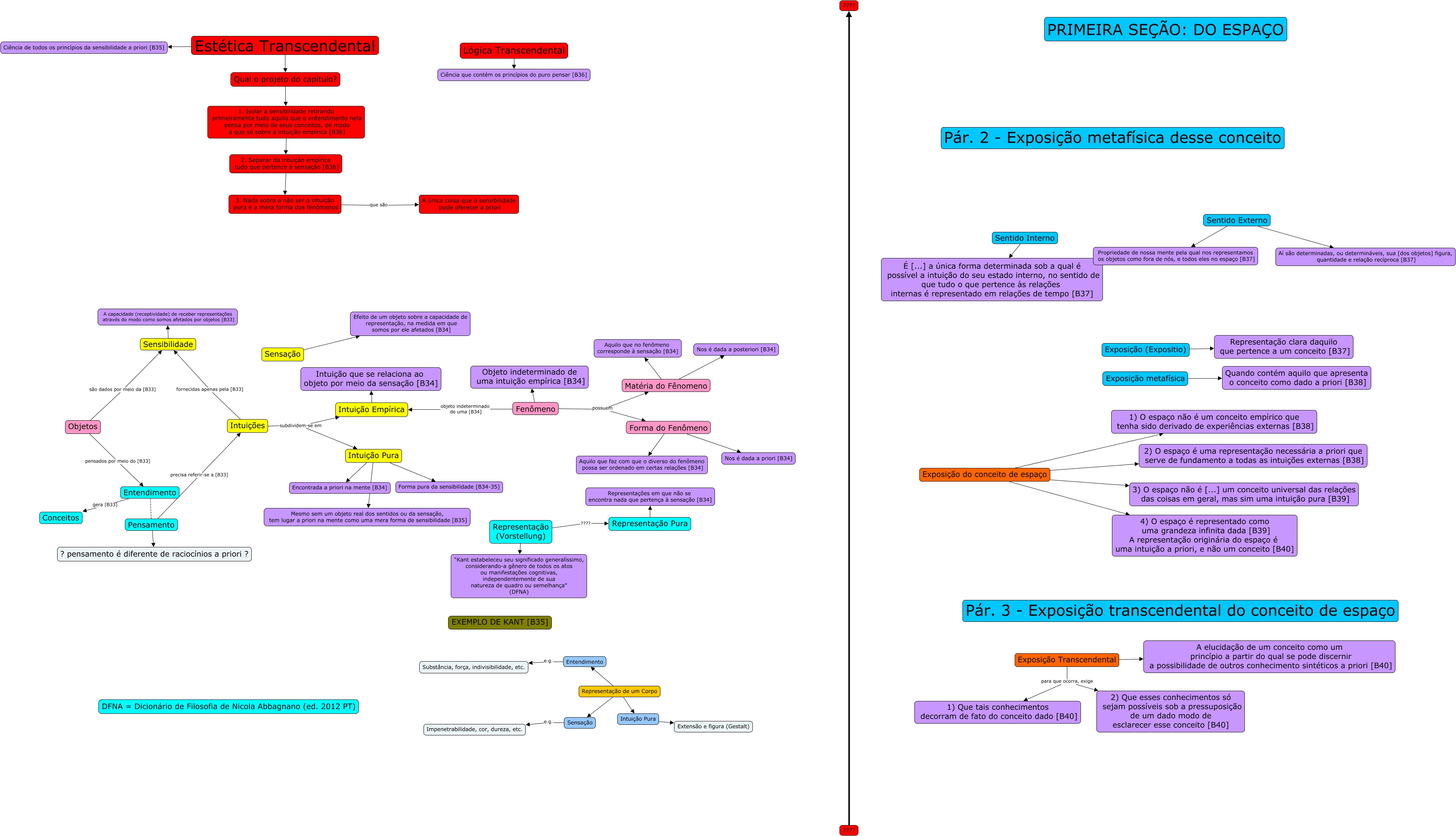 Esse mapa conceitual, produzido no IHMC CmapTools, tem a informação relacionada a: CRÍTICA DA RAZÃO PURA - ESTÉTICA TRANSCENDENTAL, Representação (Vorstellung) ???? Representação Pura, Intuições fornecidas apenas pela [B33] Sensibilidade, 1. Isolar a sensibilidade retirando primeiramente tudo aquilo que o entendimento nela pensa por meio de seus conceitos, de modo a que só sobre a intuição empírica [B36] 2. Separar da intuição empírica tudo que pertence à sensação [B36], Estética Transcendental Qual o projeto do capítulo?, Lógica Transcendental Ciência que contém os princípios do puro pensar [B36], Pensamento precisa referir-se a [B33] Intuições, Intuição Empírica Intuição que se relaciona ao objeto por meio da sensação [B34], Fenômeno Objeto indeterminado de uma intuição empírica [B34], Entendimento e.g. Substância, força, indivisibilidade, etc., Sentido Externo Aí são determinadas, ou determináveis, sua [dos objetos] figura, quantidade e relação recíproca [B37], Exposição (Expositio) Representação clara daquilo que pertence a um conceito [B37], Exposição Transcendental A elucidação de um conceito como um princípio a partir do qual se pode discernir a possibilidade de outros conhecimento sintéticos a priori [B40], 2. Separar da intuição empírica tudo que pertence à sensação [B36] 3. Nada sobra a não ser a intuição pura e a mera forma dos fenômenos, Intuição Pura Extensão e figura (Gestalt), Matéria do Fênomeno Aquilo que no fenômeno corresponde à sensação [B34], Exposição Transcendental para que ocorra, exige 1) Que tais conhecimentos decorram de fato do conceito dado [B40], Exposição metafísica Quando contém aquilo que apresenta o conceito como dado a priori [B38], Fenômeno possuem Forma do Fenômeno, ???? ????, Representação de um Corpo Sensação