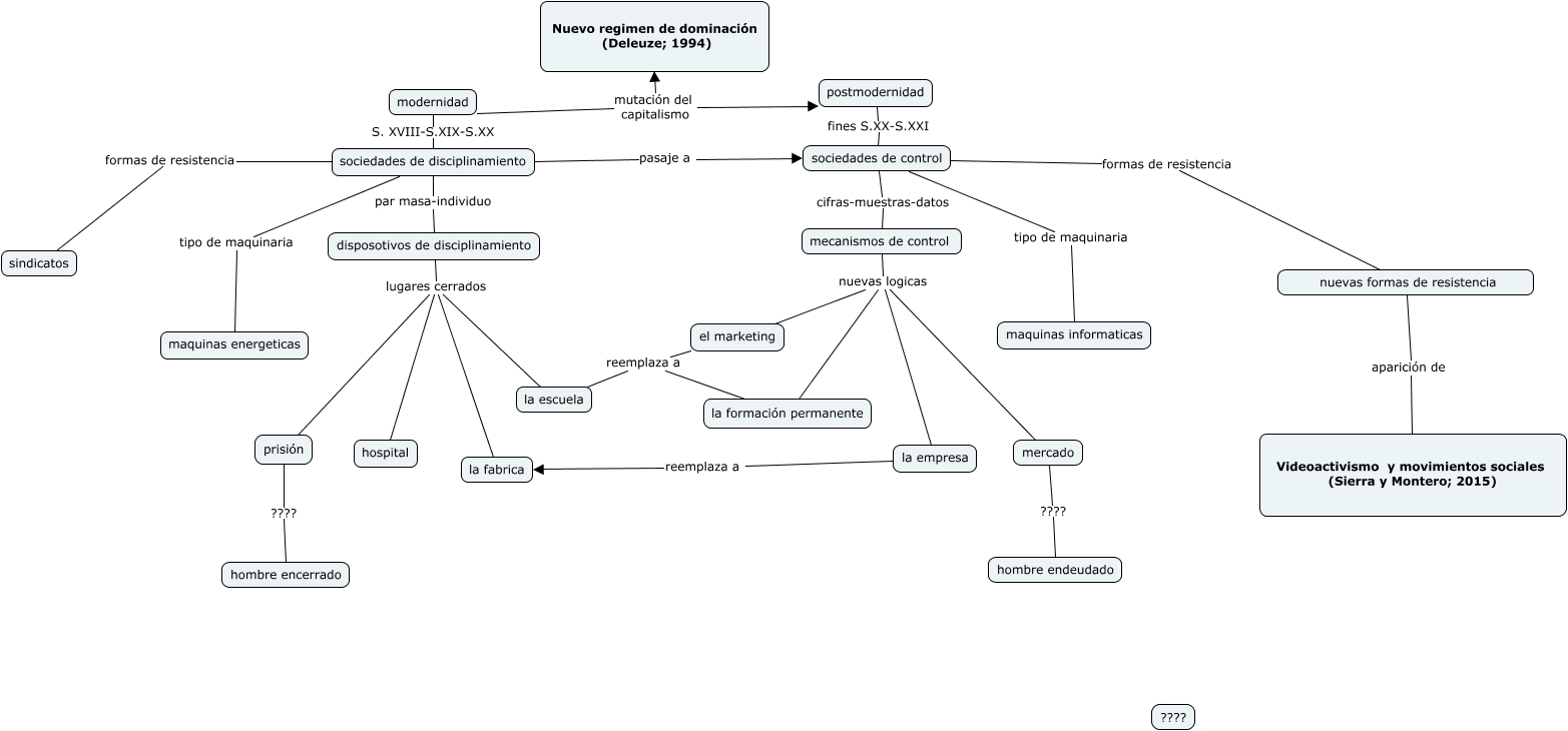 Este Cmap, tiene información relacionada con: semana 1-seminario 2 MTE, prisión ???? hombre encerrado, sociedades de disciplinamiento par masa-individuo disposotivos de disciplinamiento, mecanismos de control nuevas logicas la empresa, sociedades de control cifras-muestras-datos mecanismos de control, la formación permanente reemplaza a la escuela, modernidad S. XVIII-S.XIX-S.XX sociedades de disciplinamiento, disposotivos de disciplinamiento lugares cerrados la fabrica, modernidad mutación del capitalismo Nuevo regimen de dominación (Deleuze; 1994), disposotivos de disciplinamiento lugares cerrados prisión, sociedades de control formas de resistencia nuevas formas de resistencia, postmodernidad fines S.XX-S.XXI sociedades de control, disposotivos de disciplinamiento lugares cerrados hospital, el marketing reemplaza a la escuela, sociedades de disciplinamiento formas de resistencia sindicatos, disposotivos de disciplinamiento lugares cerrados la escuela, la empresa reemplaza a la fabrica, modernidad mutación del capitalismo postmodernidad, mecanismos de control nuevas logicas el marketing, mecanismos de control nuevas logicas la formación permanente, nuevas formas de resistencia aparición de Videoactivismo y movimientos sociales (Sierra y Montero; 2015)