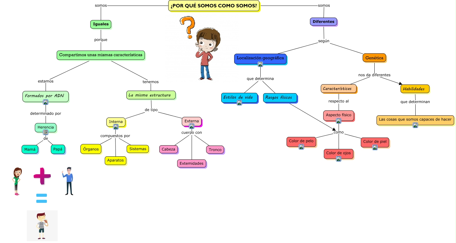 Este Cmap, tiene información relacionada con: DCE Mapa Para Alumnos, Rasgos físicos como Color de ojos, Externa cuerpo con Tronco, Compartimos unas mismas características tenemos La misma estructura, Herencia de Papá, Herencia de Mamá, ¿POR QUÉ SOMOS COMO SOMOS? somos Iguales, Localización geográfica que determina Estilos de vida, Rasgos físicos como Color de piel, Habilidades que determinan Las cosas que somos capaces de hacer, Aspecto físico como Color de ojos, Externa cuerpo con Cabeza, Interna compuestos por Sistemas, La misma estructura de tipo Interna, Genética nos da diferentes Habilidades, Formados por ADN determinado por Herencia, Interna compuestos por Órganos, Diferentes según Genética, Características respecto al Aspecto físico, Iguales porque Compartimos unas mismas características, Aspecto físico como Color de pelo