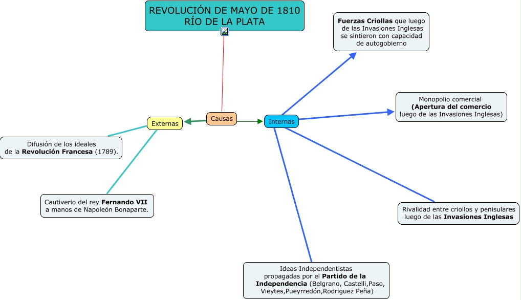 Este Cmap, tiene información relacionada con: FARAONI AGUS, Causas ???? Externas, Externas ???? Cautiverio del rey Fernando VII a manos de Napoleón Bonaparte., Causas ???? Internas, REVOLUCIÓN DE MAYO DE 1810 RÍO DE LA PLATA ???? Causas, Internas ???? Monopolio comercial (Apertura del comercio luego de las Invasiones Inglesas), Internas ???? Fuerzas Criollas que luego de las Invasiones Inglesas se sintieron con capacidad de autogobierno, Internas ???? Ideas Independentistas propagadas por el Partido de la Independencia (Belgrano, Castelli,Paso, Vieytes,Pueyrredón,Rodriguez Peña), Internas ???? Rivalidad entre criollos y penisulares luego de las Invasiones Inglesas, Externas ???? Difusión de los ideales de la Revolución Francesa (1789).