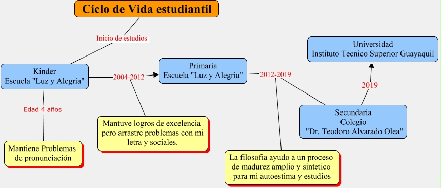 Este Cmap, tiene información relacionada con: Taller N1, Primaria Escuela "Luz y Alegria" 2012-2019 Secundaria Colegio "Dr. Teodoro Alvarado Olea", Kinder Escuela "Luz y Alegria" 2004-2012 Primaria Escuela "Luz y Alegria", Kinder Escuela "Luz y Alegria" 2004-2012 Mantuve logros de excelencia pero arrastre problemas con mi letra y sociales., Ciclo de Vida estudiantil Inicio de estudios Kinder Escuela "Luz y Alegria", Secundaria Colegio "Dr. Teodoro Alvarado Olea" 2019 Universidad Instituto Tecnico Superior Guayaquil, Primaria Escuela "Luz y Alegria" 2012-2019 La filosofia ayudo a un proceso de madurez amplio y sintetico para mi autoestima y estudios, Kinder Escuela "Luz y Alegria" Edad 4 años Mantiene Problemas de pronunciación