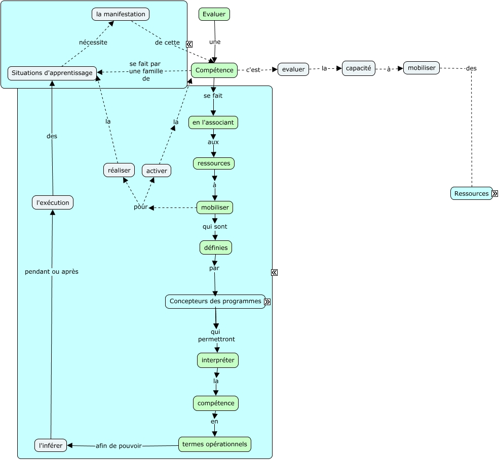 Cette carte de concepts créée avec IHMC CmapTools traite de: Evaluer une compétence, evaluer la capacité, compétence en termes opérationnels, mobiliser pour activer, connaissances déclaratives, connaissances conditionnelles, composantes qui permettront interpréter, mobiliser pour réaliser, termes opérationnels afin de pouvoir l'inférer, les concepteurs du programme de formation ce sont les attentes fin de cycle, les concepteurs du programme de formation ce sont les criteres, interpréter la compétence, ressources qui sont des savoir-être, la manifestation de cette Compétence, l'exécution des Situations d'apprentissage, Compétence se fait en l'associant, capacité à mobiliser, mobiliser des ressources, mobiliser qui sont définies, ressources sont externes, ressources qui sont des savoir-faire