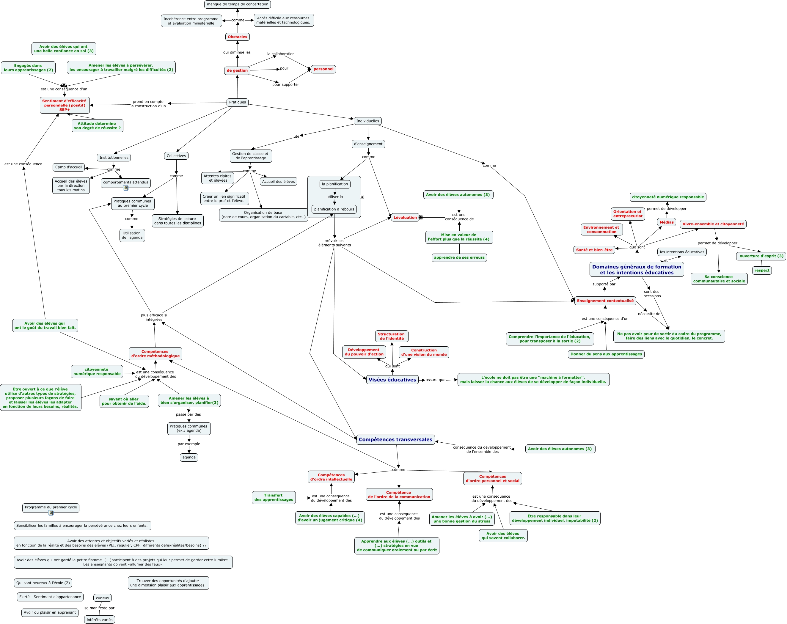 Cette carte de concepts créée avec IHMC CmapTools traite de: Projet_educatif, Institutionnelles comme comportements attendus, de gestion la collaboration personnel, Comprendre l'importance de l'éducation, pour transposer à la sortie (2) est une conséquence d'un Enseignement contextualisé, Vivre-ensemble et citoyenneté permet de développer ouverture d'esprit (3), L'évaluation de type formatif, Institutionnelles comme Accueil des élèves par la direction tous les matins, Être ouvert à ce que l'élève utilise d'autres types de stratégies, proposer plusieurs façons de faire et laisser les élèves les adapter en fonction de leurs besoins, réalités. est une conséquence du développement des Compétences d'ordre méthodologique, compétences s'appuie sur l'utilisation de tâches complexes, Collectives comme Pratiques communes au premier cycle, Individuelles de Gestion de classe et de l'aprentissage, Vivre-ensemble et citoyenneté permet de développer Sa conscience communautaire et sociale, Gestion de classe et de l'aprentissage comme Créer un lien significatif entre le prof et l'élève., Collectives comme Stratégies de lecture dans toutes les disciplines, Institutionnelles comme Camp d'accueil, Compétences transversales comme Compétences d'ordre personnel et social, Domaines généraux de formation et les intentions éducatives et les intentions éducatives, la planification utiliser la planification à rebours, Avoir des élèves autonomes (3) est une conséquence de formatif, Amener les élèves à bien s'organiser, planifier(3) passe par des Pratiques communes (ex.: agenda), Avoir des élèves qui ont une belle confiance en soi (3) est une conséquence d'un Sentiment d'efficacité personnelle (positif) SEP+