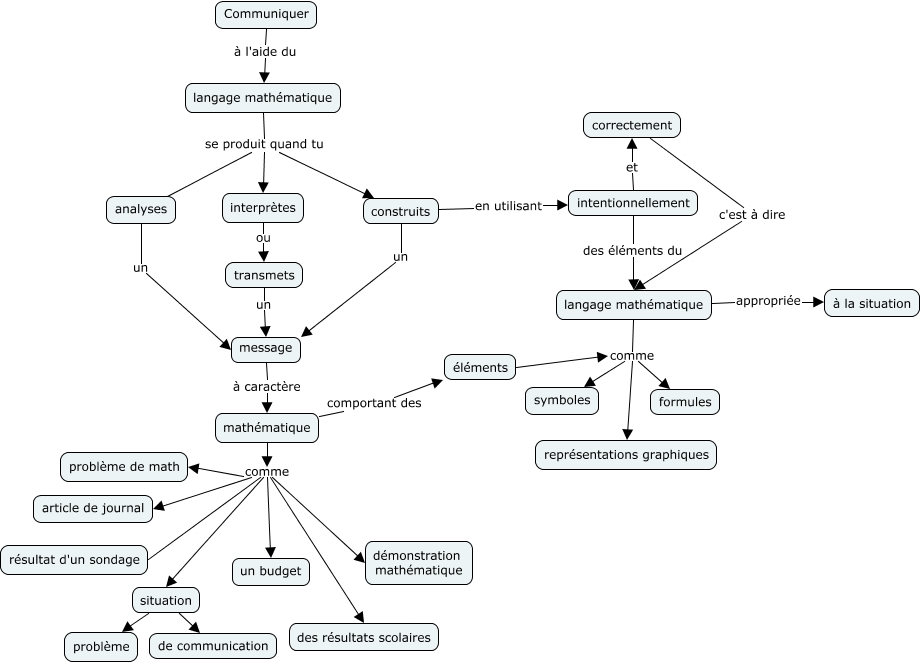 Cette carte de concepts créée avec IHMC CmapTools traite de: Communiquer à l'aide du langage mathématique, mathématique comme article de journal, analyses un message, langage mathématique appropriée à la situation, intentionnellement des éléments du langage mathématique, correctement c'est à dire langage mathématique, transmets un message, mathématique comme situation, langage mathématique se produit quand tu interprètes, éléments comme symboles, mathématique comportant des éléments, langage mathématique comme formules, message à caractère mathématique, mathématique comme des résultats scolaires, intentionnellement et correctement, situation problème, langage mathématique se produit quand tu analyses, langage mathématique comme symboles, Communiquer à l'aide du langage mathématique, mathématique comme un budget, langage mathématique comme représentations graphiques